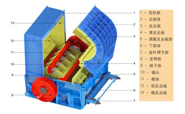 2.采用有鍵錐套聯(lián)接的轉(zhuǎn)子體、插入安裝的高效耐磨板錘、獨特的齒形反擊襯板、多方位開門機架、絲桿或液壓開啟裝置等,使設(shè)備更換易損件、檢修更加方便。